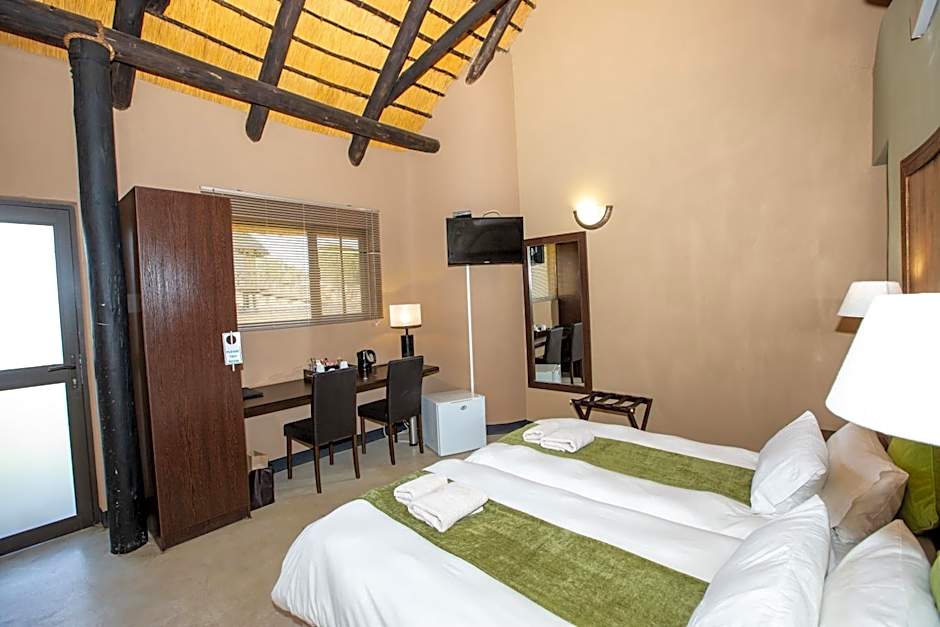 These air-conditioned chalets are located around the waterhole. They offer a living area with TV and a private patio area. The main bedroom is en-suite and there is an additional bathroom.